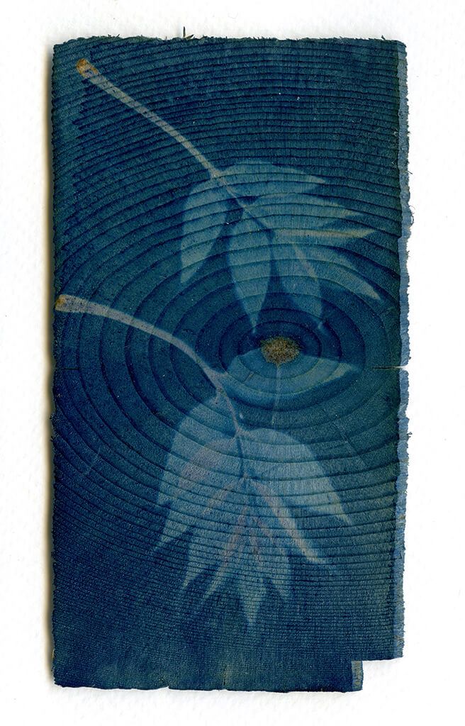 Ash leaves: Cyanotype on wood